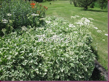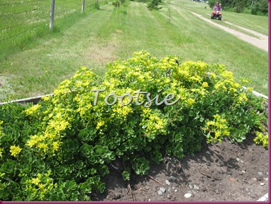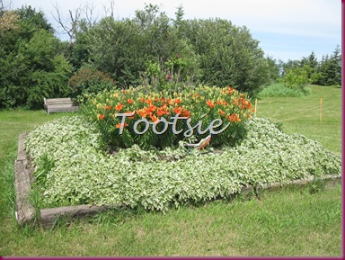 This huge square used to hold mostly marigolds. Grammie stuck a couple of Tiger Lily plants in about two years ago…and added some gout weed (snow on the mountain) in the lower part…and look at it now!