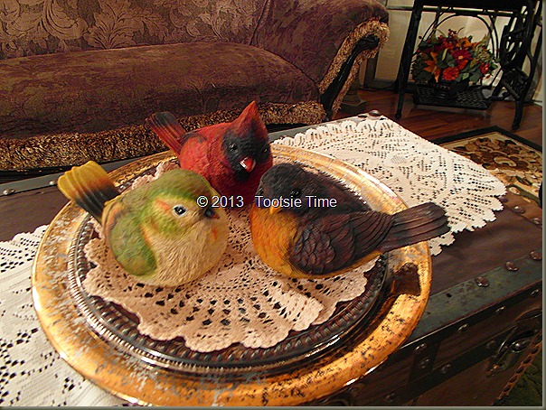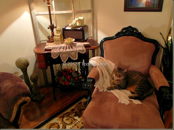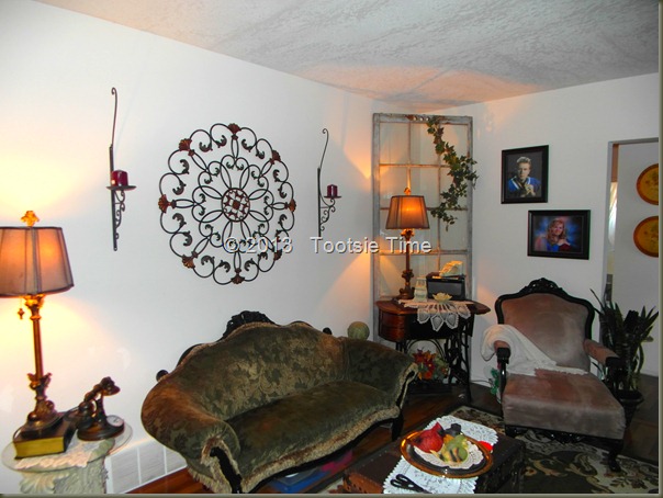My living room is tweeked!  I am happy with it for the most part…so it will stay this way.  I do have my eye on an antique sofa and love seat…lol…so you never know…you might be seeing my living room again soon! :) :)