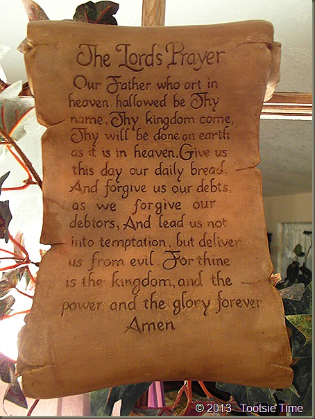 This is just perfect!   I didn’t take down the plaque or the vines on this side…I figure it is a window working on both sides now, and the Lords Prayer is so pretty on there…It can stay!